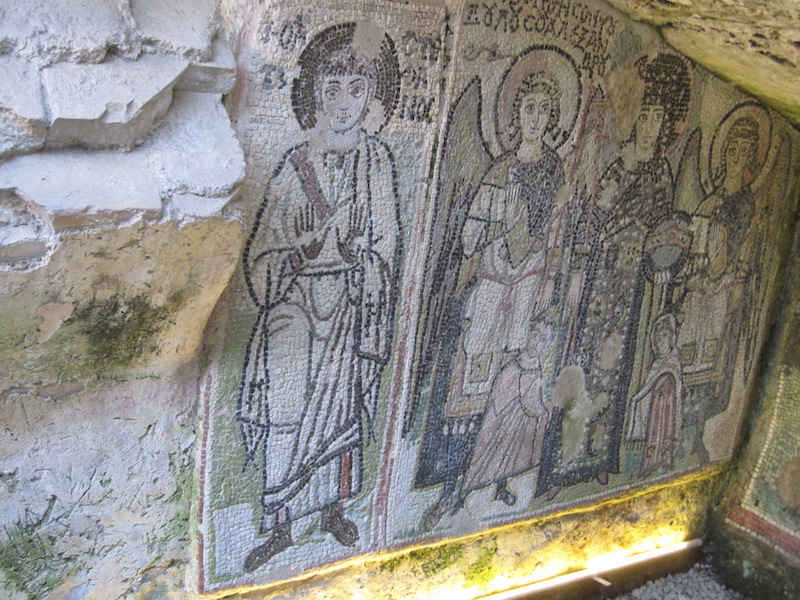 Außerdem ist eine byzantinische Kapelle zu bewundern, die nach dem Verbot der Gladiatorenkämpfe von der christlichen Gemeinde in das Amphitheater eingebaut worden ist und in der uns vor allem die Mosaiken fasziniert haben; Maria als Himmelskönigin und die Erzengel Michael und Gabriel waren gut zu erkennen.