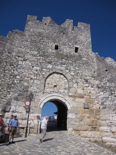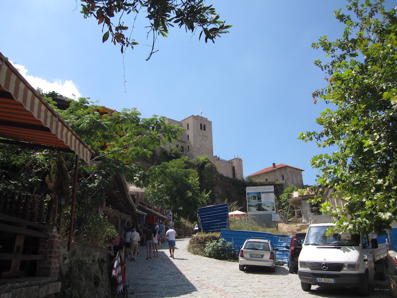Dann gönnten wir uns einen kleinen Lunch in einem Restaurant mit Terrasse und einem herrlichen Blick auf den Burgberg hatte. Als wir fragenden Blicks auf die albanischen Menükarten schauten, übersetzte uns die Wirtin alles auf Hochdeutsch, das sie und ihr Mann fließend sprachen. So profitierten wir davon, dass beide einige Zeit in Deutschland gearbeitet hatten und danach in die Heimat zurückgekehrt waren.