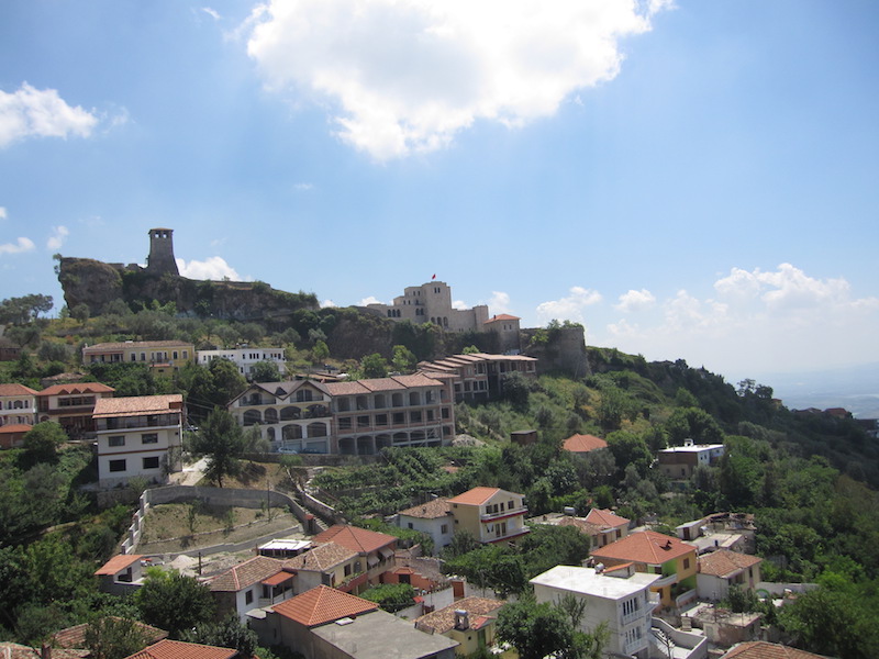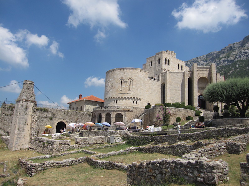 Über der malerisch gelegenen Stadt, die sich ca. 600 m über dem Meeresspiegel am Felsabhang des Sari-Salltek-Berges hochzieht, ragt die alte Burg auf einem Felsvorsprung hervor. Sie spielt in der albanischen Geschichte eine bedeutende Rolle. Gjerg Kastrioti, Sohn eines nordalbanischen Stammesfürsten, setzte sich 1443, nachdem er zuvor als Anführer eines albanischen Kontingents an Kriegszügen des osmanischen Sultans teilgenommen hatte, von den Türken ab. Er kehrte in seine Heimat zurück, bemächtigte sich Krujës und begann als Anführer einer Gruppe von Stammesfürsten Mittel- und Nordalbaniens einen Aufstand gegen die osmanische Herrschaft. Skanderbeg – am Hof des Sultans nahm er den Namen Iskander (Alexander) an und erhielt wegen seiner Verdienste den Titel Bey oder Beg – kämpfte unter der roten Fahne mit dem schwarzen doppelköpfigem Adler, die heute die albanische Staatsflagge ist, erfolgreich sogar gegen Mehmet II., der 1453 Konstantinopel eroberte, und blieb bis zu seinem Tod 1468 unbesiegt. Zehn Jahre später gelang es den Türken aber Krujë auszuhungern und ganz Albanien zu besetzen, das sie fortan über 400 Jahre beherrschen sollten.