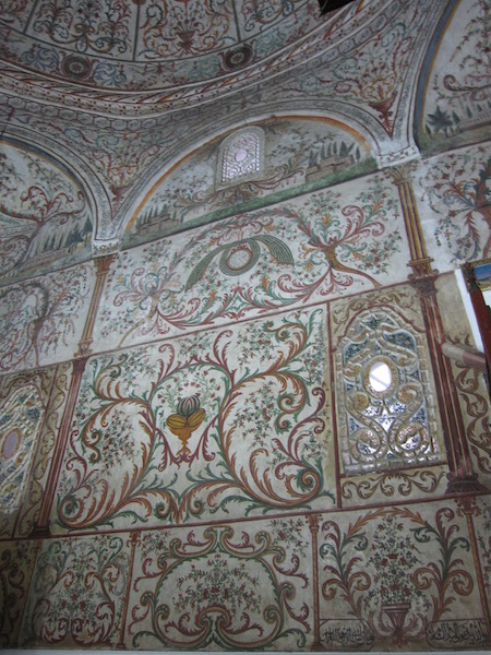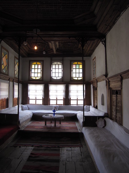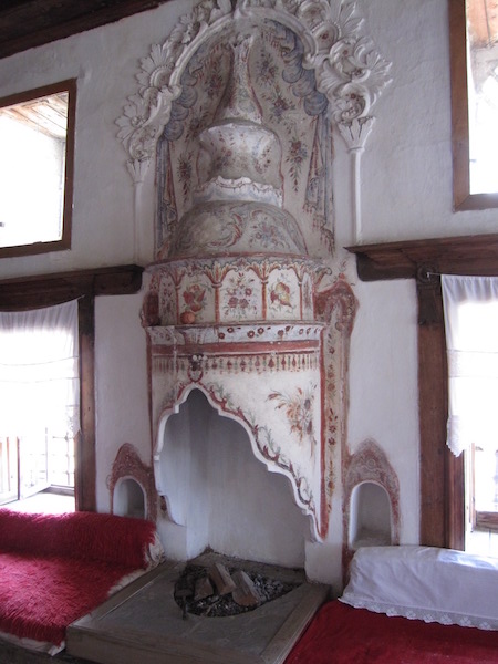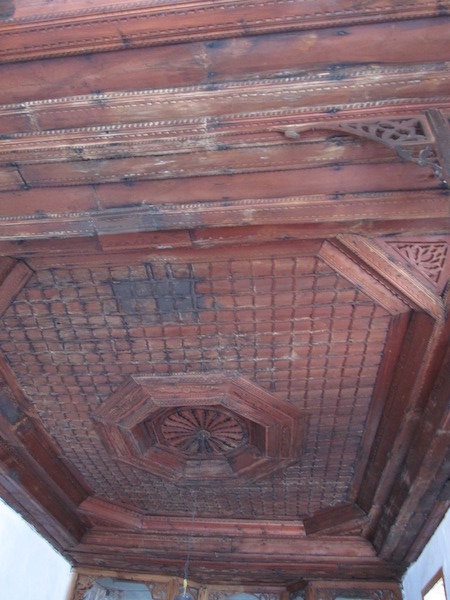 Um einen näheren Eindruck von den „besseren“ Lebensverhältnissen in ihr zu bekommen, machten wir uns mit unserem Begleiter zum Zekater-Haus auf (1811/12 erbaut), dessen Besitzer der höchste Verwaltungsbeamte der Stadt war. Das mehrstöckige Gebäude entdeckten wir nach und nach. Zunächst ging es in die Küche und in ein Schlafzimmer, dann im 2. Obergeschoss in einen Raum mit Kamin, der – wie damals üblich – mit niedrigen Sitzgelegenheiten ausgestattet war. Ganz in der Nähe: eine einfache Toilette. Schließlich begaben wir uns ins 3. Obergeschoss, wo wir den großen Gäste- und Festraum bewunderten mit seiner kunstvoll gearbeiteten Decke, einem großen Wandschrank, über dem sich eine Empore für die Frauen zeigte, und einem kunstvoll bemalten Kamin.