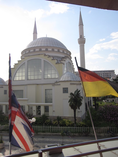 Nachdem wir beim Frühstück herausgefunden hatten, dass sowohl das einzigartige Fotomuseum Marubi, das wir eigentlich auf jeden Fall besuchen wollten, als auch das historische Museum an Wochenenden geschlossen sind, entschieden wir uns für einen Ausflug an den Skutari-See, der teils zu Albanien, teils zu Montenegro gehört und eine reichhaltige Wasserflora besitzt. Während wir in Richtung Shirokë und Zogaj fuhren, wurde es auf der Straße immer einsamer und die Straße selbst immer enger, so dass wir schließlich bei einer Moschee Halt machten. Wie wir später erfuhren, sind die Bewohner Zogajs fast alle Muslime.