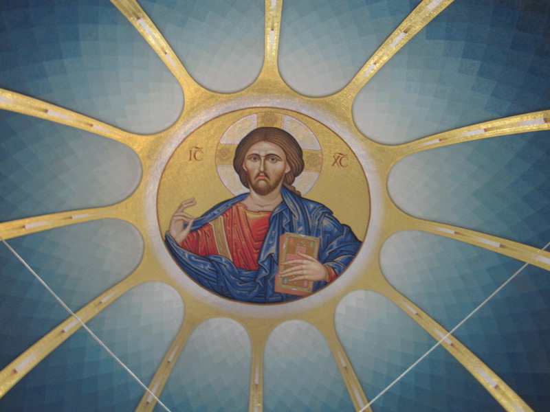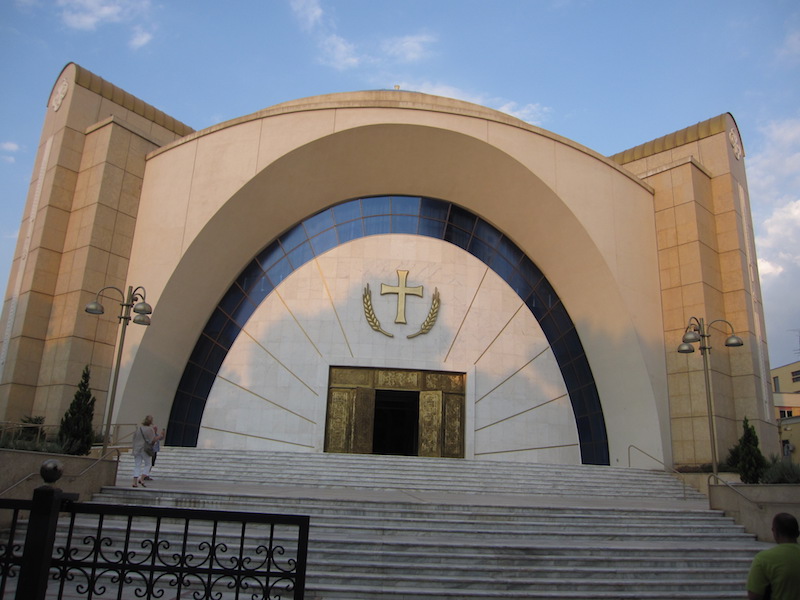 Wir wandten unsere Schritte vom Platz weg zur neuen orthodoxen Kathedrale Tiranës, die alte wurde von den Kommunisten zerstört. Im Untergeschoss bewunderten wir einen großen Kongresssaal, im Innern zogen eine in Marmor gefasste Ikonenwand und ein Christus Pantokrator im Gewölbe unsere Blicke an. Vom Entwurf, von der Größe und den verwandten Materialien her war die orthodoxe Kathedrale für uns ein architektonisches Highlight. Das etwas abgelegene katholische Pendant, das wir danach besuchten, überzeugte uns dagegen weniger. Daran konnte auch eine Statue Mutter Teresas vor der Kirche und ihre Würdigung in deren Fenstern wenig ändern.